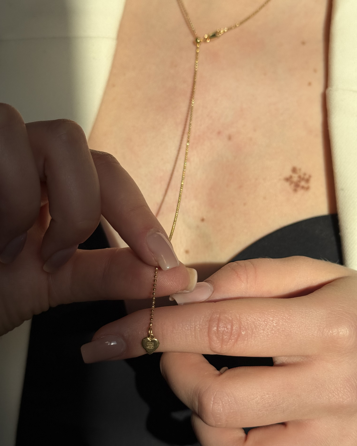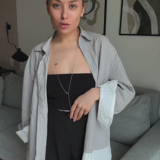 A versatile Y-style necklace finished with a delicate heart pendant at the drop. Designed with a sliding bead clasp, it lets you adjust the length to your perfect fit — wear it short, long, or layered in between.