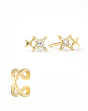 The X.ONE crossover ear cuff meets a softly luminous star-shaped stud for a modern ear stack with attitude. Clean lines, subtle pavé glow — wear them solo or as a set. No piercing needed, unmistakable character included.